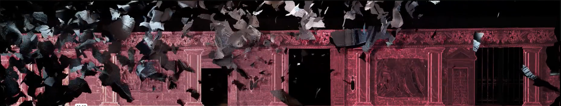 Les façades ont été créées à la fois en 3D dans Blender et à l’aide d’images générées par IA, mêlant procédural, simulation et esthétique générative.